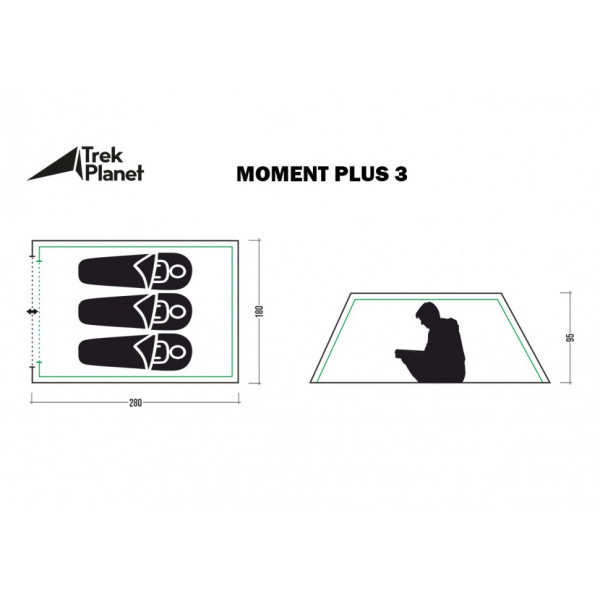 Все размеры внешняя палатка 280(Д)x180(Ш)x95(В) см, внутренняя палатка 270(Д)x170(Ш)x90(В) см
