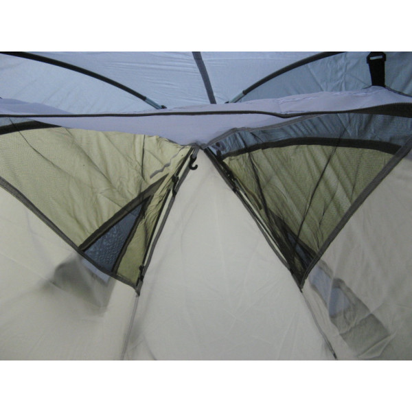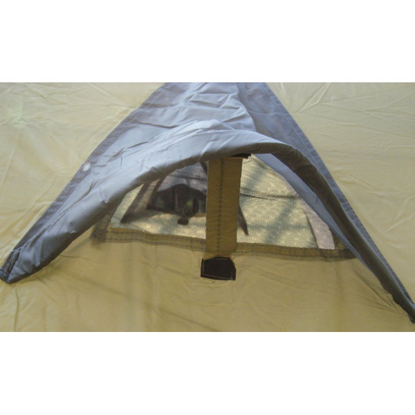 Особенности Огнеупорная пропитка, 2 вентиляционных клапана на боковых стенках, прозрачные вставки со шторками на входе в тамбур, москитная сетка, карманы для мелочей, петля для подвешивания фонаря.