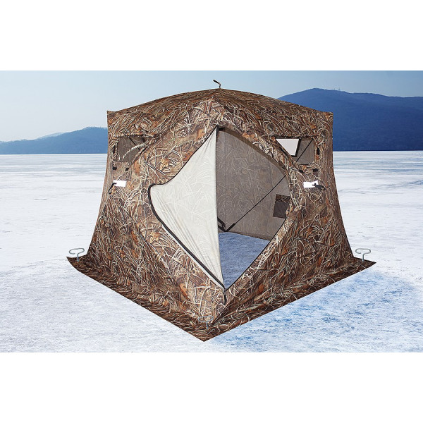 Трапециевидная камуфлированная зимняя палатка. С 2016 года используется новый вид 3D Camo принта. Каждая палатка оснащена четырьмя съемными смотровыми окнами, закрывающимися дополнительными тканевыми клапанами. Вентиляционные отверстия находятся под потолком и снабжены специальными клапанами. Палатка оснащена четырьмя сетчатыми карманами для хранения необходимых рыболовных аксессуаров.
