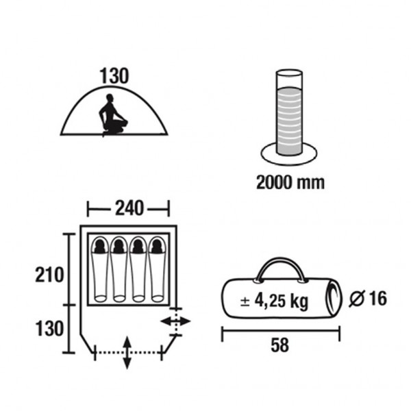 Водостойкость внешнего тента 2000 мм и проклееные швы гарантируют прекрасную защиту от дождя и ветра.