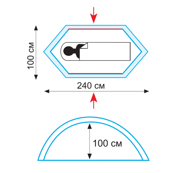 Все размеры внешняя палатка 240(Д)x100(Ш)x100(В) см, внутренняя палатка 240(Д)x100(Ш)x100(В) см