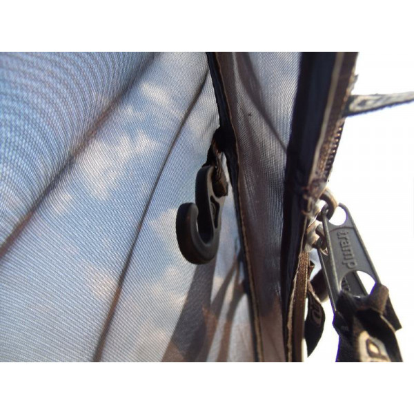 Вход D-образный, на качественной двухзамковой молнии с возможностью открывания в одно касание даже с занятыми руками. Продублирован москитной сеткой. Дно – загибается по краям вверх для большей влагоустойчивости.