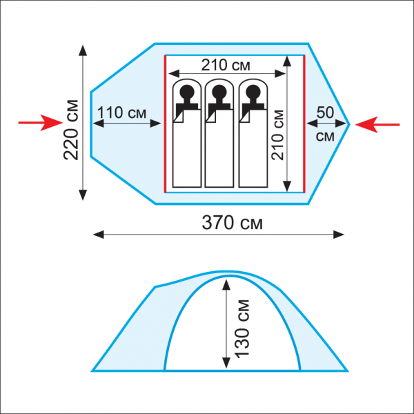 Вентиляция. Два противоположных входа в спальное отделение и вентиляционные клапаны в крыше тента.