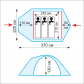 Тент водонепроницаемый 6000 мм. в. ст., устойчивый к растяжению, оработан составом для поглощения UF лучей и пропиткой, предотвращающей распространение огня. Оборудован растяжками с вплетением светоотражающей нити и проклеенными швами.