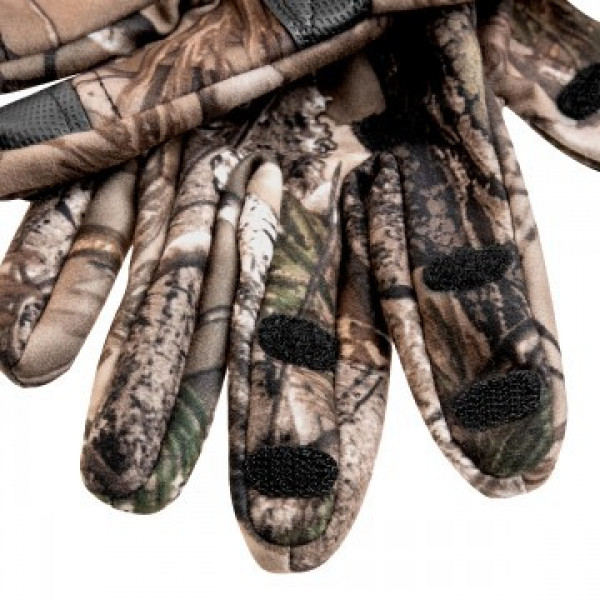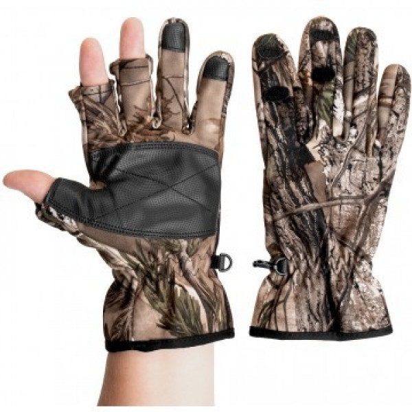 Перчатки отлично подойдут для охоты или рыбалки впрохладное время года. Защитные накладки из синтетической кожи на пальцах и ладони. На каждой перчатке в паре имеется по три откидных пальца (большой, указательный и средний). Эластичная резинка на запястье. Карабин для состегивания перчаток вместе или крепления к одежде.