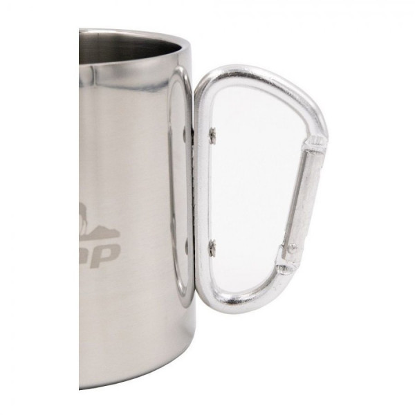 Туристическая термокружка с ручкой-карабином на 350 мл пристёгивается за карабин к поясу, лямке на рюкзаке или к органайзеру в лагере — не потеряется. Ручка-карабин надёжно прикреплена к корпусу с помощью точечной сварки. Послужит отличным подарком для туриста. Полированная поверхность легко моется. Ручка в виде карабина без муфты — при необходимости быстро пристёгивается и отстёгивается.