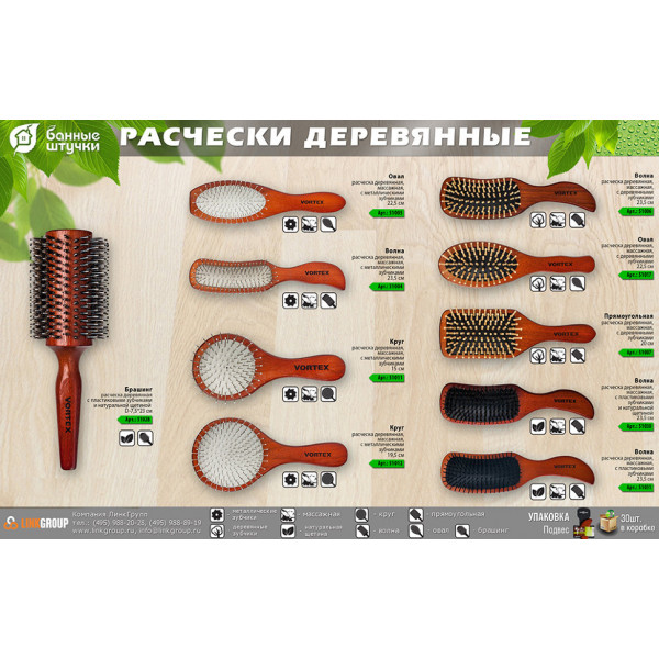 Гладкая поверхность расчески не повреждает волосы при расчесывании. Удобная ручка не выскальзывает из рук. Благодаря оригинальному дизайну расческу можно использовать как для расчесывания, так и для укладки. Подходит для всех типов волос вне зависимости от длины.