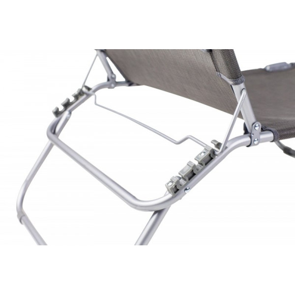 3-х позиционная регулировка наклона спинки позволяет принять наиболее комфортное положение. В сложенном состоянии не занимает много места, имеет удобные лямки для переноски.