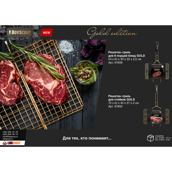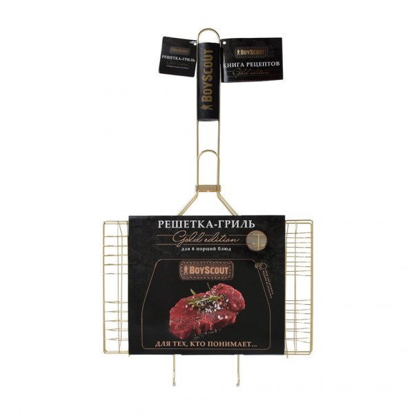 Решётка-гриль универсальная gold, 62(+5)х30х25х5,5 см . Материал: высококачественная сталь с пищевым хромированным покрытием (цвет золото), деревянная ручка.