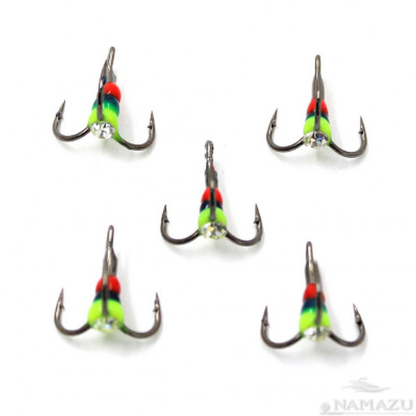 Крючок рыболовный Namazu, тройник, 5 шт. в упаковке. Номер 10 по международной классификации, код цвета: RYB. Рекомендуемый сезон использования: зима.