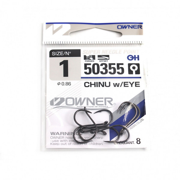 Крючки Owner серии Chinu With Eye 50355 выпускаются с чуть отогнутым колечком на цевье. Очень прочные, с супер стойким покрытием Black Chrome, они пригодны к использованию в самых разнообразных условиях. Наличие колечка позволяет для привязки применять различные варианты узлов.