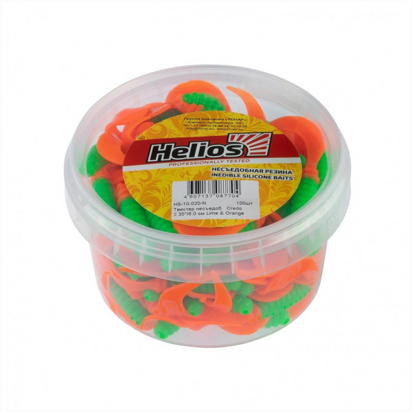 Твистер Helios Credo 2,35"/6,0 см, цвет Lime & Orange 7 шт HS-10-020