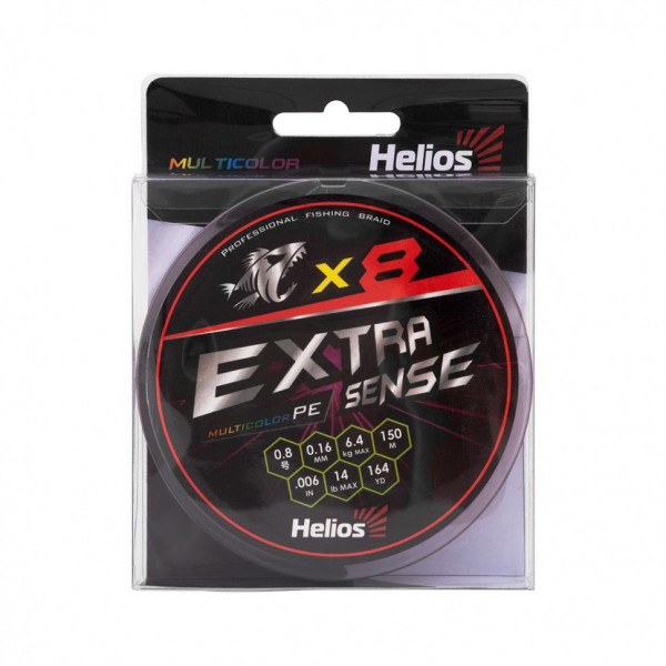 Шнур плетеный Helios Extrasense X8 PE 0.8/14LB 0,16мм 150м Multicolor HS-ES-X8-0.8/14LB