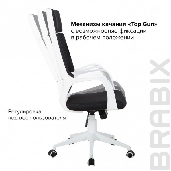 Кресло Prime EX-515 отличается своим актуальным, эргономичным дизайном и тщательно подобранными материалами. Высокая, вентилируемая спинка с мягкими вставками поддерживает осанку ровной и снижает усталость спины. Модель оснащена механизмом качания. Вентилируемая спинка кресла. Обивка кресла выполнена из высококачественной мебельной ткани. Она устойчива к износу, создает комфортные условия в любом температурном режиме и неприхотлива в уходе. Надежный механизм качания "Top Gun" гарантирует хорошую поддержку спины и поясницы за счет возможности свободного качания с фиксацией в одном рабочем положении и регулировку угла наклона под вес сидящего. Кресло выдерживает нагрузку до 120 кг. Качественное, надежное кресло премиального сегмента. Кресла марки BRABIX отличаются современным дизайном, эргономикой, аккуратным исполнением и отличным соотношением цены и качества.