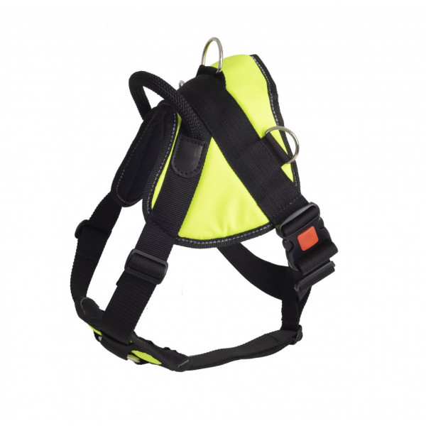 Эта функциональная шлейка со светоотражающими строчками изготовлена из высокопрочного нейлона. Для большего комфорта собаки спереди на шлейке расположен мягкий треугольник. Удобная круглая ручка позволит удерживать питомца рядом. Длина ремней легко регулируется, а застежка-фастекс для ещё большей надежности оснащена кнопкой блокировки. Подходит для собак средних пород.