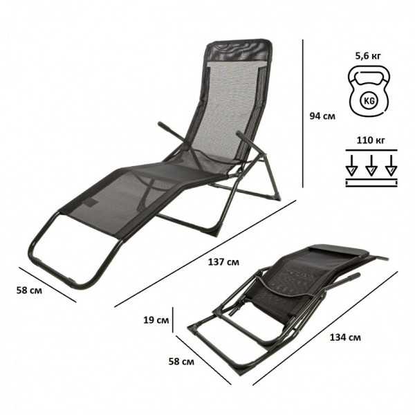 • Размер сложенный (ДхШхВ): 134х58х19 см