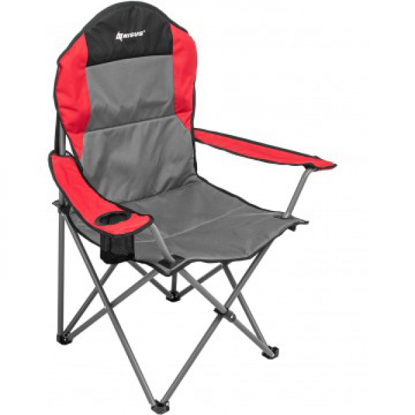 Кресло складное NISUS арт.N-244-GRD-1 с усиленным стальным каркасом из трубы диаметром 19мм позволяет выдерживать вес до 120 кг. Удобное широкое кресло с мягким сиденьем и тканевыми подлокотниками. В правом подлокотнике расположен подстаканник из сетки для стакана или банки с напитком.