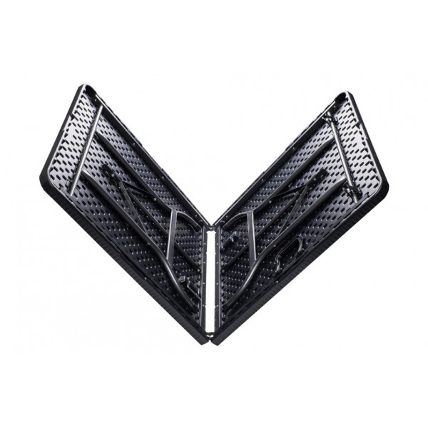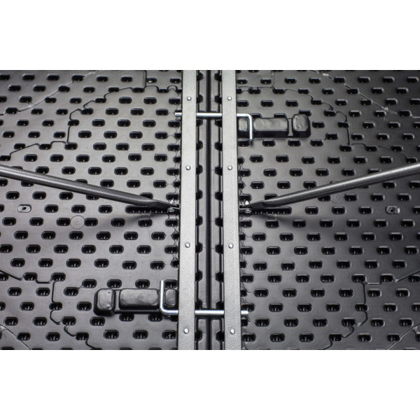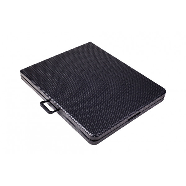 Столешница выполнена из пластика HDPE толщиной 4,5 мм. Пластик совершенно не боится воды. Если вы забыли стол под дождем или что-то пролили, то достаточно протереть его сухой тряпкой и он снова готов к использованию. Две половины столешницы надежно скрепляются между собой, препятствуя произвольному сложению стола во время использования. В сложенном виде стол превращается в удобный для переноски и хранения чемодан с ручкой.