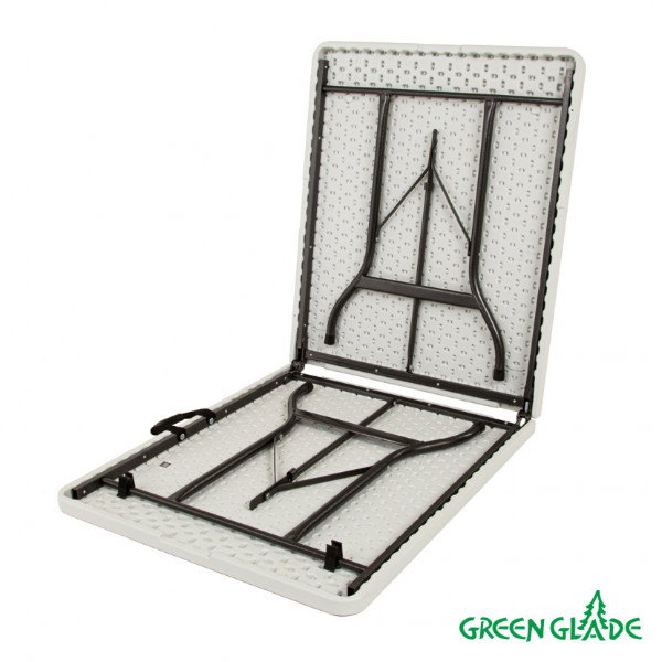 Каркас сделан из качественной стали с порошковой покраской. При такой обработке стали длительность использования сильно увеличивается. Стол хорошо защищен от произвольного складывания при использовании. На ножках имеются стопорные кольца. Две половины столешницы надежно скрепляются между собой. Каждая ножка заканчивается пластиковым наконечником, которые предотвращают повреждения пола, при использовании в помещении, или кемпинговом шатре с полом.