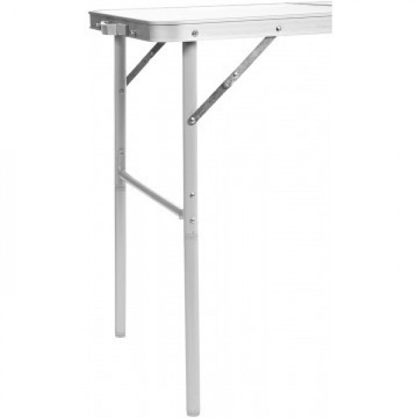 Удобный, небольшой складной стол с телескопическими ножками. В сложенном виде он занимает совсем немного места, а в разложенном виде позволяет разместить большое количество блюд. Транспортировочным чехлом не укомплектован.