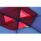 В потолке тента шатра имеется регулируемый воздушный клапан, что обеспечивает отличную вентиляцию. Это особенно важно в жаркую погоду. Яркая окраска тента делает его хорошо заметным в любое время суток.