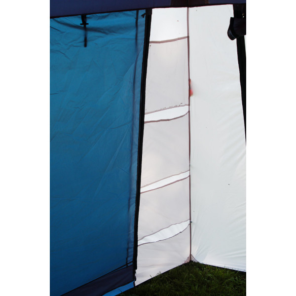 Конструкция имеет три входа, которые застегиваются на молнию. На всех стенах шатра есть москитные сетки с мелкой ячейкой от насекомых, и защитные полотна от ветра и дождя.