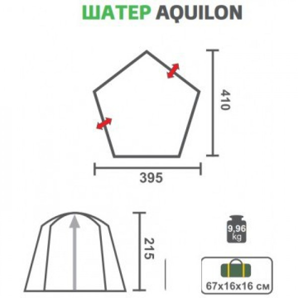 Шатер AQUILON (Helios) - большой шатер с противомоскитной сеткой. Эффективно защитит от ветра, дождя, яркого солнца и насекомых. Под его навесом можно разместить кухню или столовую, хранить снаряжение. В сложенном виде шатер занимает мало места и спокойно размещается в багажнике.
