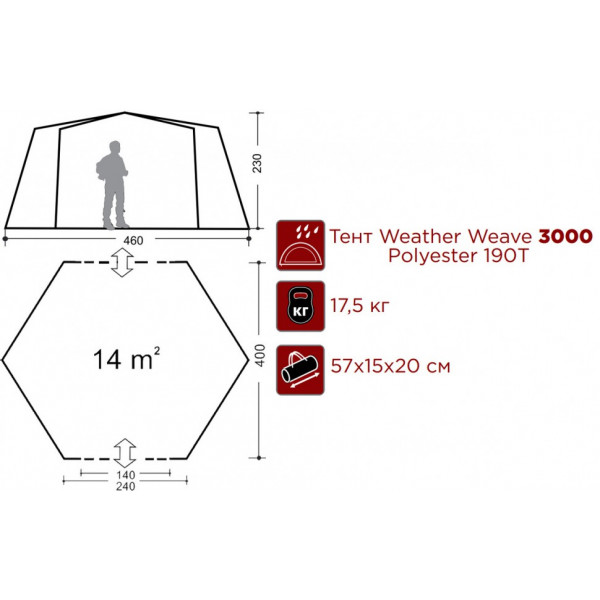 - Размер тента: 400х460х230 см;