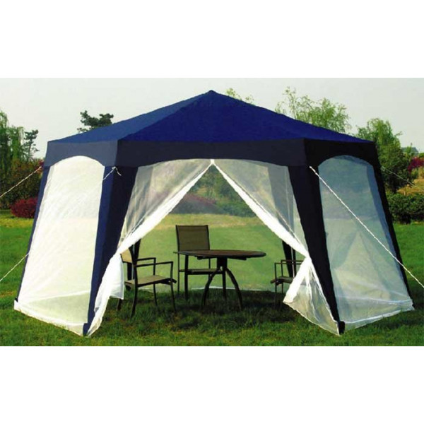 Шатер 10061 имеет удобную форму шестигранника, он бесспорно станет украшением Вашего участка и сделает дачный отдых невероятно комфортным. А благодаря стенкам с москитными сетками, можете не беспокоится о надоедливых насекомых – они Вам будут не страшны!