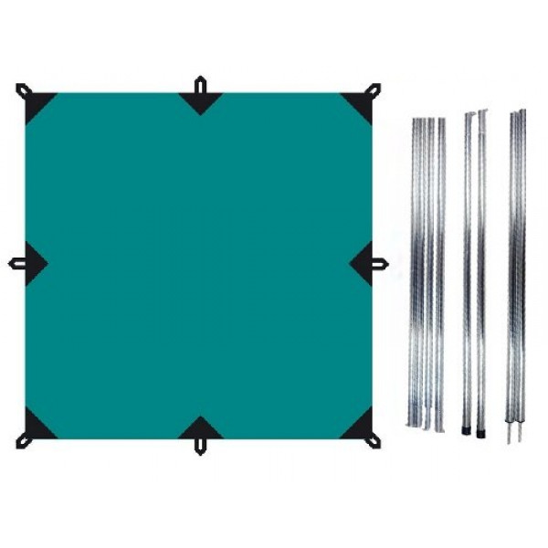 Комплект поставки тент, 2 стойки высотой 3 м, 8 оттяжек (3 м) + 8 колышков