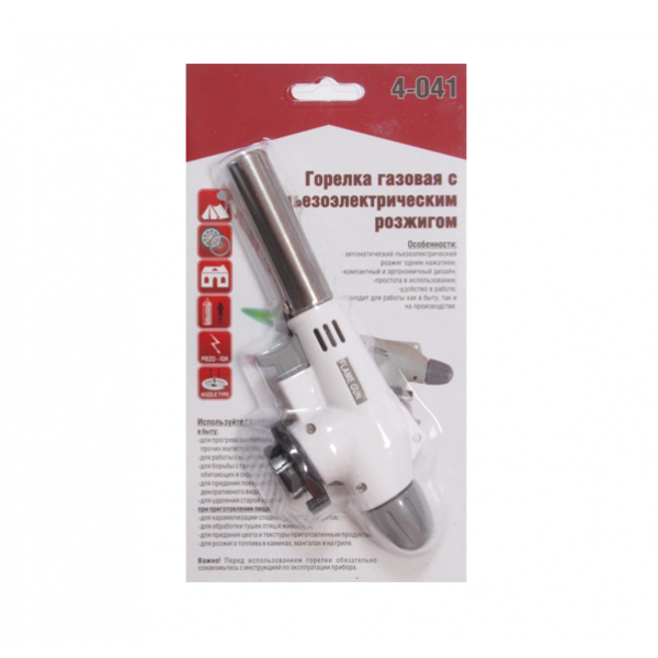Горелка работает на газовом топливе в стандартных газовых баллонах (например PF-FG-220) с клапаном нажимного типа и цанговым захватом. Предназначена для работы: С металлическими изделиями: - выжигание, прокаливание и нагрев труб, прутков, резьбовых соединений - прогрев металлических труб с замерзшими жидкостями - пайка или сварка низкотемпературными припоями (оловянные и медные припои) С древесиной: - создание декоративной текстуры на деревянных изделиях - обжиг деревянных конструкций для уничтожения грибка, плесени или насекомых-вредителей - для розжига древесного угля, дров в каминах или печах В саду и на огороде: - для выжигания муравейников - для сжигания листвы и травы При приготовлении пищи: - для карамелизации сладких десертов, фруктов - для розжига мангалов и грилей, костров - для поверхностного обжига мясных и овощных блюд Также будет очень полезна рыбакам на зимней рыбалке.
