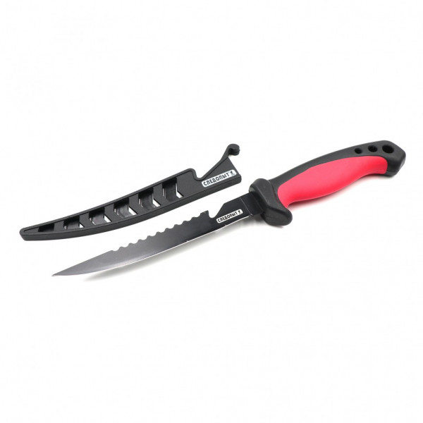 Нож разделочный филейный Следопыт используется для разделки мяса и нарезки ровных тонких кусков любого продукта. Глубока подпальцевая выемка обеспечивает отличную фиксацию ручки при работе, длинный сужающийся острый и гибкий клинок позволяет быстро отделять филе от хребта и костей. Зубчатая часть (серрейтор) на обухе лезвия предназначена для рассечения мелких костей и очистки рыбы от чешуи, рядом с ней расположен стропорез. В комплекте с ножом поставляется облегченный пластиковый чехол-ножны, повторяющий форму лезвия, с фиксатором на ручке. Предназначен для охотников, рыболовов, может быть использован и на домашней кухней.