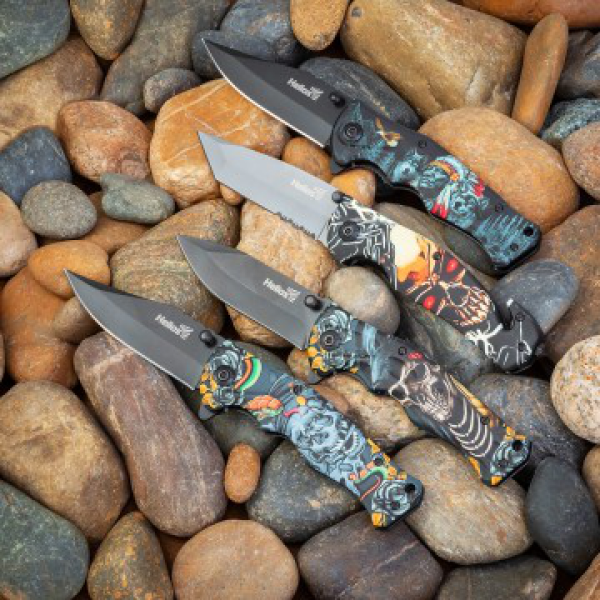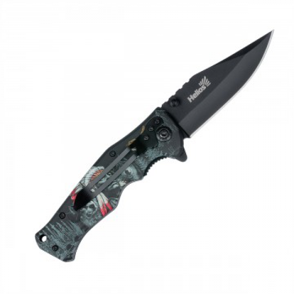 Серия складных ножей Helios, это удобные и прочные клинки. Ножи Helios предназначены для использования в повседневной жизни EDC (Every Day Carry), но при необходимости, ножи не подведут Вас и в непредсказуемых ситуациях. В серии использован различный дизайн окраса рукояти, от граффити до кмф, а также фактурные вставки из ударопрочного пластика. Клинок данной модели имеет плейновую заточку и оборудован шпеньком для удобного однорукого открывания. Фиксируется клинок с помощью замка Liner Lock. В качестве материала рукояти используется комбинация из стальных накладок и ударопрочного пластика G10. Ножи Helios - это надежные и прочные клинки, соответствующие ГОСТ Р 51501-99.