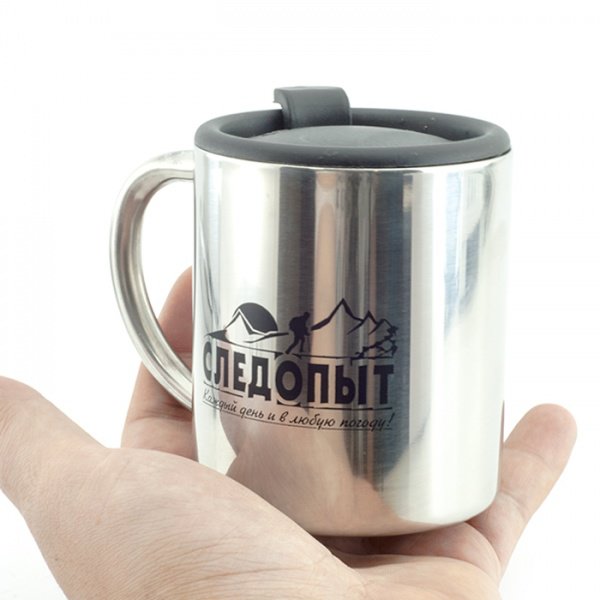 Походная кружка СЛЕДОПЫТ с двойной стенкой, изготовлена из нержавеющей стали методом штамповки и последующего сваривания двух независимых сосудов разных диаметров. Поставляется в комплекте с удобной крышкой, которая имеет уплотнительное кольцо из высококачественного силикона.