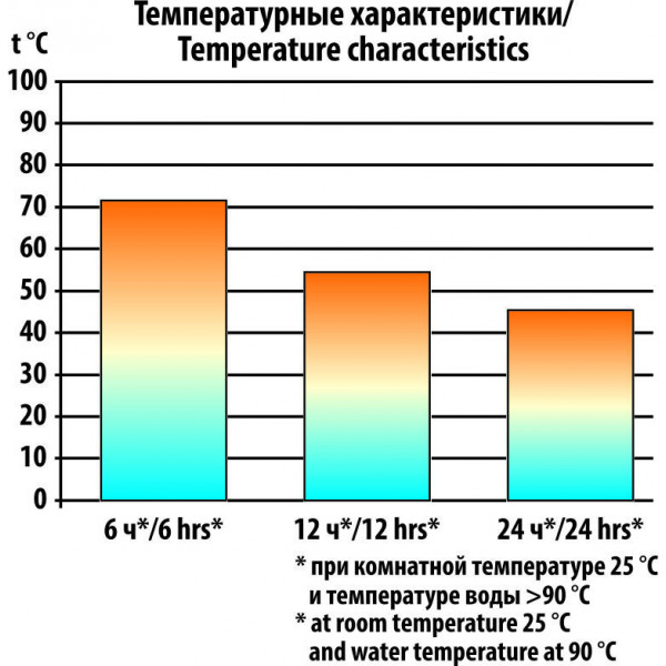 Термосы изготовлены по уникальной технологии вакуумирования: за счет создания вакуума между стенками внутренней и внешней колб удалось сократить до минимума интенсивность теплообмена, благодаря чему содержимое термоса может сохранять первоначальную температуру на протяжении более длительного времени. Наружные стенки внутреннего слоя подвергаются медированию, что еще более уменьшает теплопотери.Благодаря применяемым технологиям, термос надолго сохранит необходимую температуру содержимого - как холодного, так и горячего, а стильный дизайн позволяет использовать термосы Следопыт повсеместно!