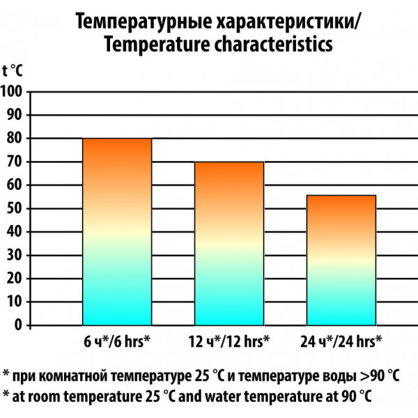 Термосы изготовлены по уникальной технологии вакуумирования: за счет создания вакуума между стенками внутренней и внешней колб удалось сократить до минимума интенсивность теплообмена, благодаря чему содержимое термоса может сохранять первоначальную температуру на протяжении более длительного времени. Наружные стенки внутреннего слоя подвергаются медированию, что еще более уменьшает теплопотери.