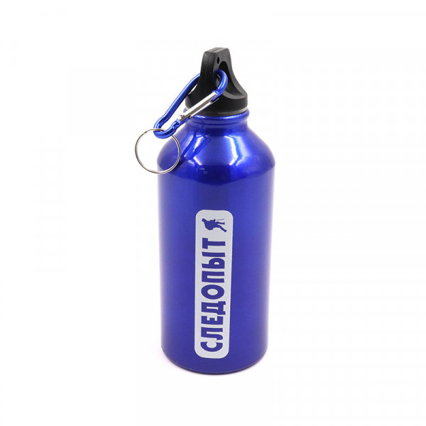 Питьевая алюминиевая бутылка Следопыт с карабином для подвеса на снаряжение.