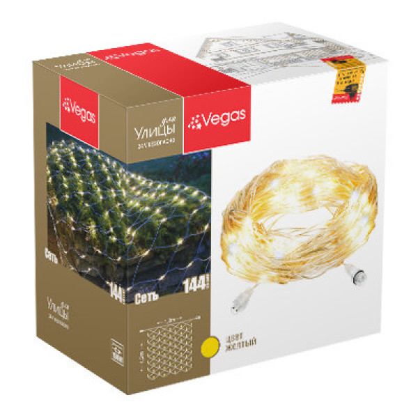 Уличная светодиодная гирлянда (желтый свет) Vegas Сеть 144 LED, 1,2х1,5 м, 24V 55034