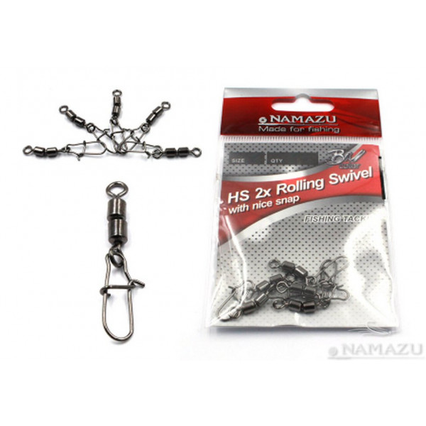 Модель HS 2X ROLLING SWIVELS WITH NICE SNAP от бренда Namazu. Вертлюжок с двумя бочкообразными корпусами и застежкой. Классический по форме карабин надежно соединяет нужные детали оснастки, не нарушая их подвижности. Ушки ветрлюга имеют круглую форму. Максимальный размер (4) способен выдержать нагрузку до 23 кг, минимальный размер (14) выдерживает до 4 кг. Обширный модельный ряд позволит подобрать вертлюг, способный выдержать нужный вес.