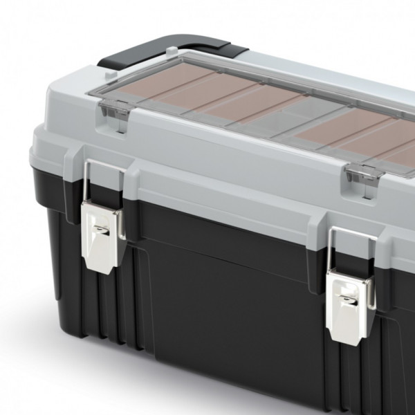 Ящик для инструментов серии OPTIMA предназначен для мастеров-любителей. Ящик рассчитан на хранение инструментов и мелких деталей. Все изделия серии OPTIMA оснащены переносным контейнером для мастерских. Крышки имеют встроенные органайзеры, оснащенные съемными перегородками и контейнерами для удобного хранения мелких деталей. Крышки органайзеров изготовлены из ударопрочного поликарбоната. В крышке имеется практичная алюминиевая ручка, которая позволяет трансформировать ящик в устойчивый и практичный рабочий стол.
