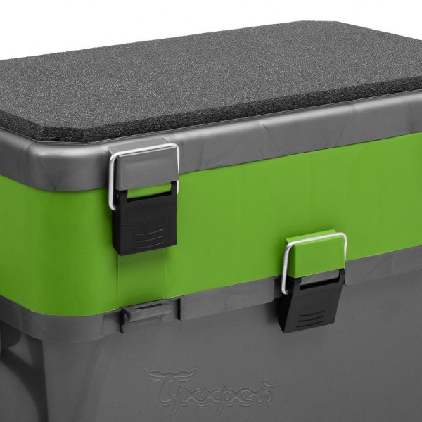 - Мягкое незамерзающее сиденье на крышке ящика, аккумулирующее тепло, позволит рыболову комфортно рыбачить с ящика долгое время.