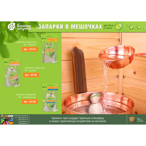 Способ применения: Применение для каменки мешочек заливается кипятком и настаивается 15-20 минут. Ёмкость желательно закрыть крышкой. сначала обдайте камни горячей водой. Камни слегка остынут и в это время на них нужно плеснуть травяной настой. Повторить процедуру несколько раз. Применение для принятия ванн мешочек заливается 5 литрами кипятка и настаивается 15-20 минут. Перед принятием ванны влейте настой в воду комфортной температуры. Рекомендуется принимать ванну в течение 15 минут.