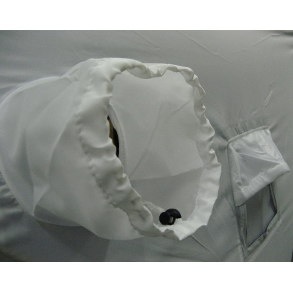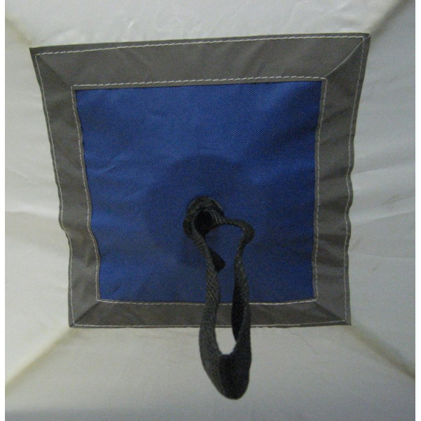 Палатка для зимней рыбалки выполнена из ткани Oxford 210D PU 1000, что обеспечивает долговечность, непродуваемость и водонепроницаемость конструкции. Для хорошего освещения внутреннего пространства в тент встроено два отстегивающихся окна, выполненных из прозрачного морозо- и износостойкого материала.