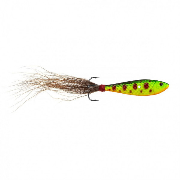 Бокоплав Dancer № 7052 – горизонтальный металлический балансир в виде малька с впаянным в хвостик тройником. Для придания балансиру естественности и плавности движений на хвосте предусмотрена кисточка из шерсти. По ширине блесна неоднородна, один край всегда толще другого, это сделано для придания приманке неповторимой игры.