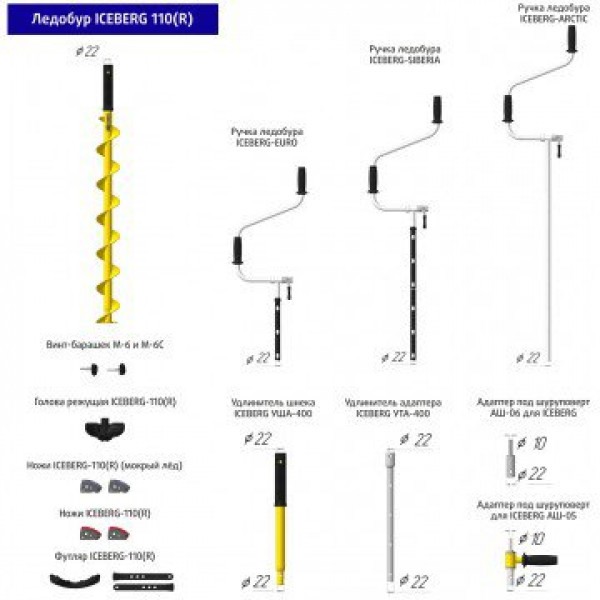 Комплект поставки ледобура Iceberg-Siberia 110R: