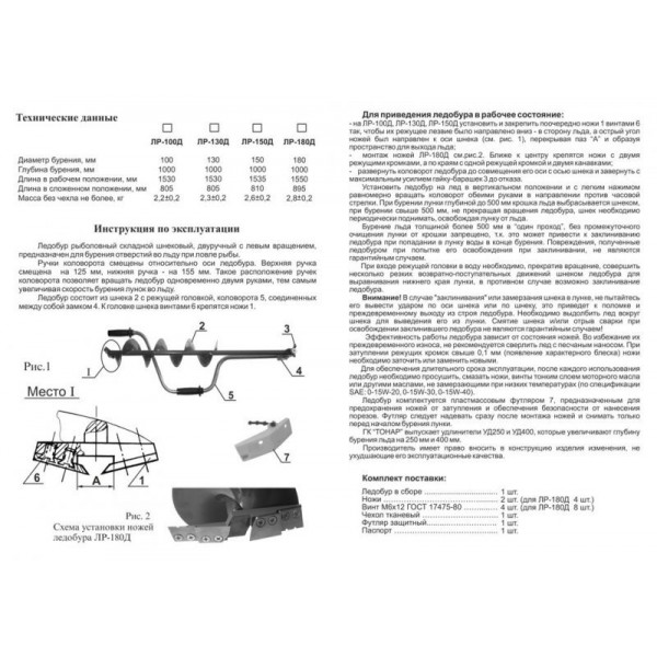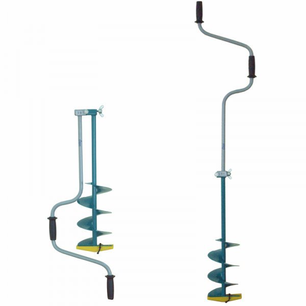Основное и единственное отличие двуручных ледобуров от классических – верхняя рукоятка ледобура смещена относительно оси ледобура на 130 мм, а нижняя на 150 мм. Такое расположение рукояток позволяет вращать ледобур одновременно двумя руками, тем самым, увеличивая скорость бурения лунок во льду. Кроме того, существенно уменьшаются габариты ледобура в транспортном положении. По всем остальным характеристикам двуручные ледобуры полностью соответствуют классическим.