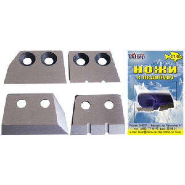 Конструкция: На ледобур диаметром 180 мм устанавливаются сразу четыре ножа, на рабочей поверхности внешних ножей выполнены канавки.
