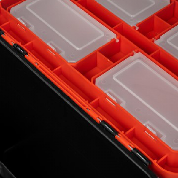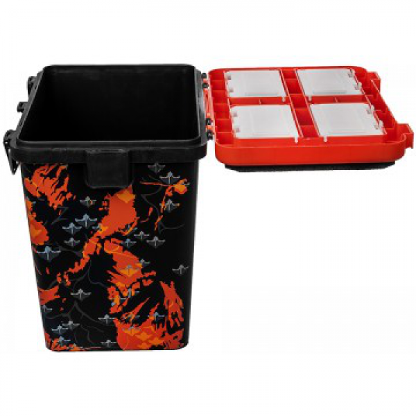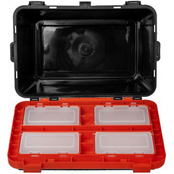 Благодаря объему 19 литров, ящик вместит очень много полезных снастей для рыбалки. Основной отсек предназначен для переноски рыболовных снастей, термоса, так же удобен для перевозки улова. На внутренней стороне крышки размещены 4 отделения с полупрозрачными крышками для хранения мелких аксессуаров.