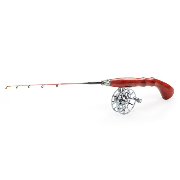 Эргономичная рукоять удочки выполнена из красного дерева. Удочки оснащены металлическими катушками с регулируемым тормозом. Бархатный чехол и богатая упаковка входят в комплект. Удочки оснащаются сменными хлыстиками из стеклопластика, технология производства которого защищена патентами.