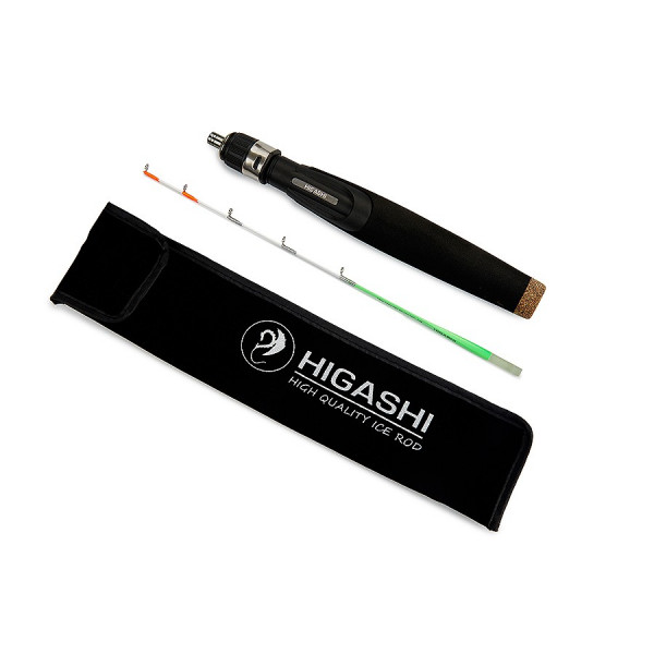 Зимнее двусоставное штекерное удилище Higashi iFish. Хлыстик выполняющий функцию кивка выполнен из стекловолокна, "теплая" рукоять из материала EVA оснащена катушкодержателем для оснащения удилища подмоточной катушкой.
